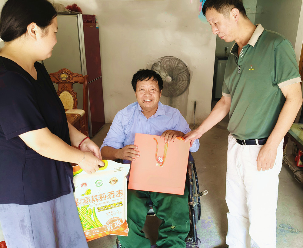 9月28日,桐城兴财控股集团公司工作人员上门走访慰问新渡镇合城村脱贫户汪旭峰(中),为其送上大米、月饼等慰问品,并致以诚挚的节日问候。 中秋佳节将至,为让困难群体度过一个祥和温馨的节日,该公司组织人员走进结对帮扶村——合城村、凤凰村,走访慰问两村共10户困难家庭,为他们带去满满的节日祝福。 洪贞贞 雷蕾 孙传银 摄 |