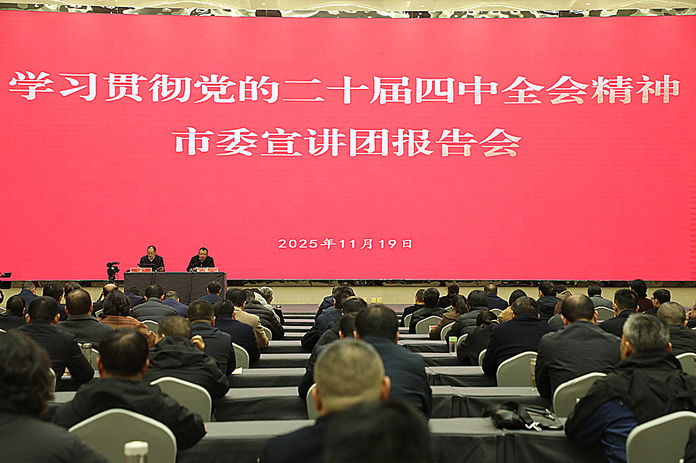 11月19日,学习贯彻党的二十届四中全会精神安庆市委宣讲团报告会在桐举行。安庆市委宣讲团成员、安庆市科学技术局党组书记、局长鲁长江作宣讲报告。桐城市委书记章周中主持宣讲报告会,市领导洪长久、谢文婕、方钱方、殷锐等到会聆听宣讲报告。