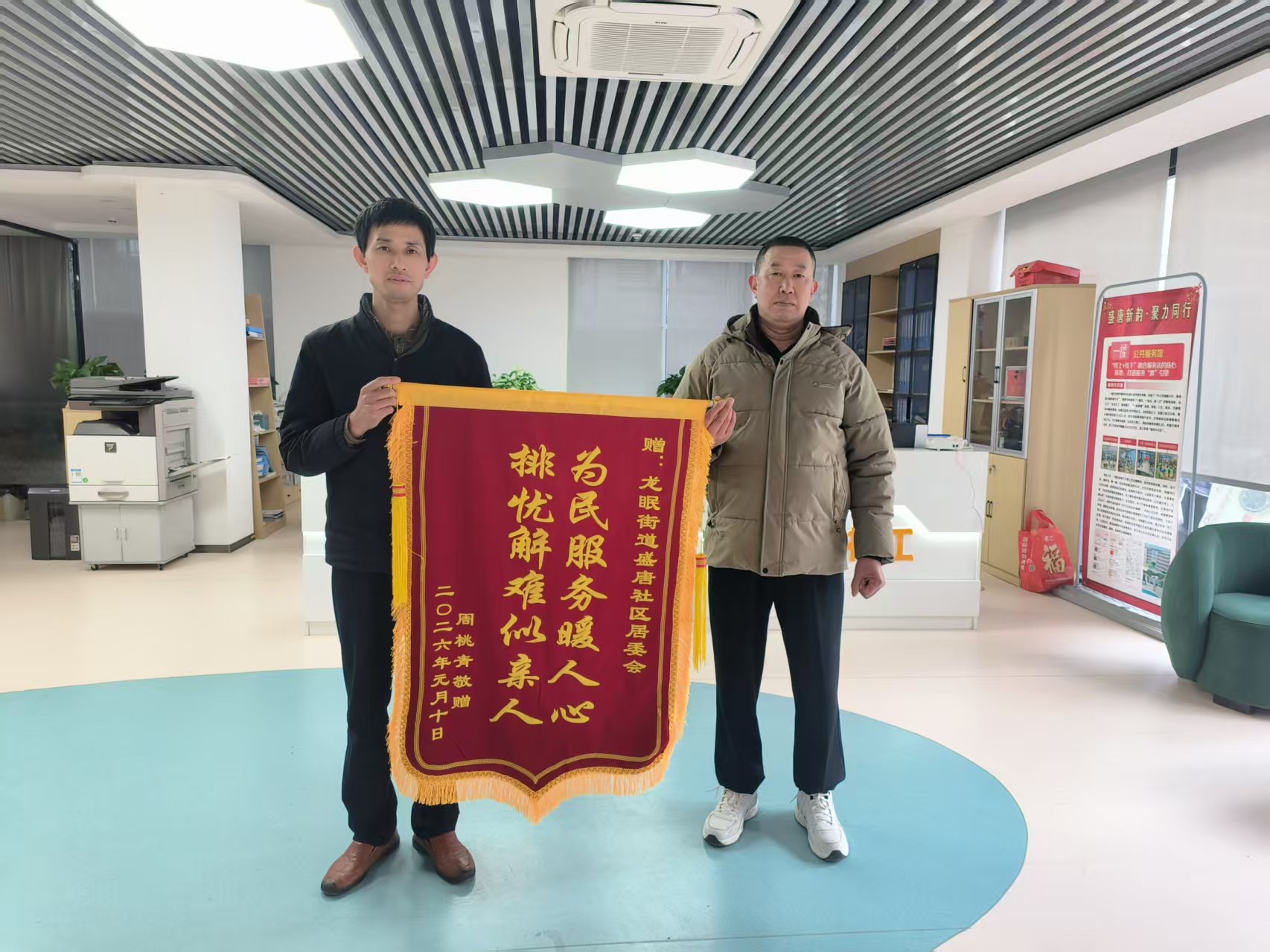 “多亏了社区工作人员的及时救助,不然我母亲的情况真不敢想象!这份恩情我们永远记在心里。”近日,龙眠街道盛唐社区居民周桃青专程来到社区,将一面印着“为民服务暖人心 排忧解难似亲人”的锦旗送到社区工作人员手中,以此感谢社区工作人员深夜紧急救助家中独居突发脑梗老人的暖心举动。