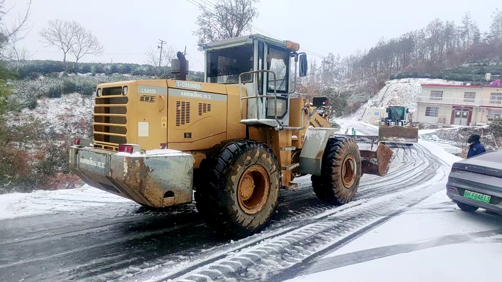 面对积雪较厚、人工清理难度大的S337省道黄铺村段等重要交通干线,该镇调配大型铲车等机械设备,开展循环铲雪作业。镇应急办工作人员现场协调指挥,重点清除道路中央及两侧积雪,最大限度提升清雪效率,确保这条贯穿山区的“主动脉”安全畅通。