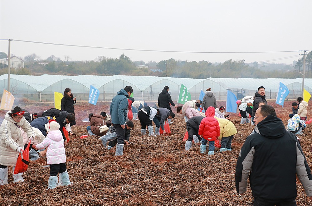 图为“挖红薯”亲子活动现场。