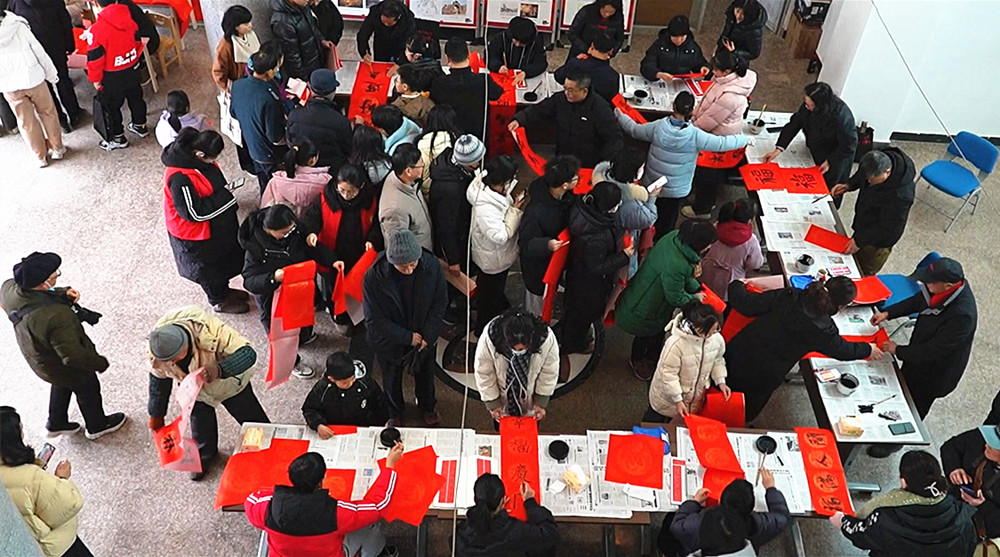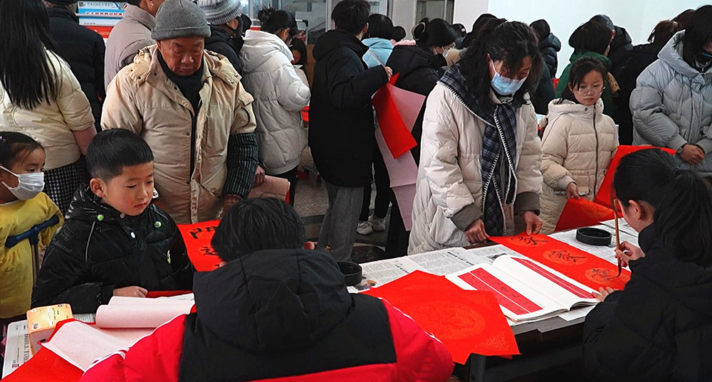 “万马奔腾气象新,百花齐放春满园”“跃马奔腾行大运,鸿福浩荡贺新春”……一副副寓意吉祥、饱含祝福的春联跃然纸上,或端庄大气,或灵动飘逸,既有传统书法的艺术韵味,又寄托着大家对马年新春的美好期盼。少年书法艺术爱好者也上场助阵,帮助市民书写春联。红彤彤的春联、金灿灿的福字,浓浓的年味儿扑面而来。