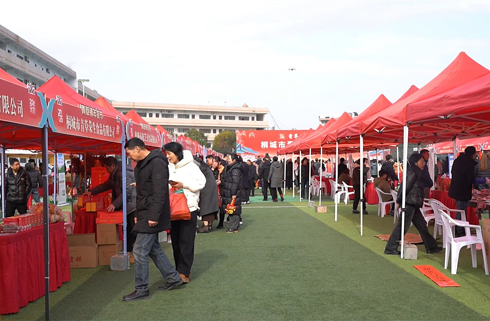 本届年货节以“桐享消费·品质生活”为主题,融合传统年货市集、特色农产品展销、企业专场招聘与“村晚”文艺演出,集非遗文化展示、乡土美食、就业服务等于一体,为当地及周边群众献上一场年味浓郁、实惠满满的新春盛会。