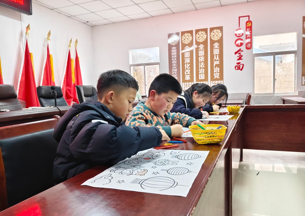 元宵佳节来临之际,龙腾街道和平村新时代文明实践站内,孩子正在参与“欢乐闹元宵·萌娃画‘团圆’”主题绘画活动。