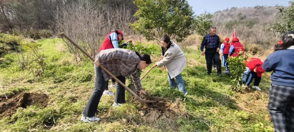 植树现场,大家热情高涨,干劲十足。 有的挥锹铲土,有的扶苗填坑,有的压土浇水,各个环节井然有序,现场呈现出一派热火朝天的劳动景象。不一会儿,一株株新栽的树苗迎风挺立,为春日的大地增添勃勃生机。