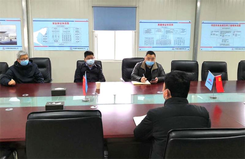 在合安高铁桐城东站项目部,徐雄与建设单位负责人深入交流,仔细了解合安高铁桐城段项目建设进度,详细询问返岗员工安置、防疫措施落实等情况,并就当前项目复工过程中存在的建材运输、原材料供应不畅等问题进行了现场办公。