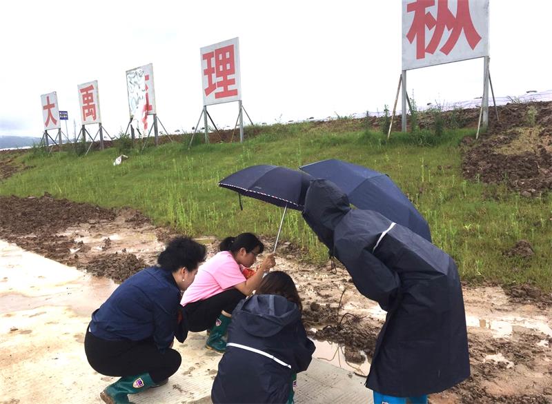“这有一处小水坑,好像有冒泡的情况。”几名女队员闻讯,马上围拢过来,担任队长的凌晓梅凭借多年的防汛经验,仔细辨别,排除疑点,大家才松了一口气。烈日下,女队员们顶着阳光的暴晒,仍然盼望天晴,少下一点雨就意味着江堤圩堤多一分安全;当暴雨来袭时,大家满身泥浆、衣服湿透也浑然不顾,队员们笑言:“谁说只有鲜花美,我做水杉护大堤”。