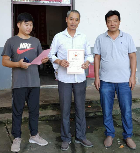吴选付所在的油坊村民组有5户贫困户12人,逢年过节老吴都会拎着鱼肉登门看望;村民组有条柏油路,早年修建加上工程车碾压,已是满目疮痍,老吴每年都出资修整;今年新冠肺炎袭来,老吴向桐城市红十字会捐款3500元抗疫。8月3日,该村两委成员将红十字会颁发的荣誉证书送到吴选付手上,老吴既高兴又激动地说:“有生之年,只要我还能干得动这门手艺,我会继续献爱心!”言为心之声,行为心之迹。5年来,吴选付热心公益、乐善好施深受乡亲们称赞。(吴凤阳 孙传银 摄)