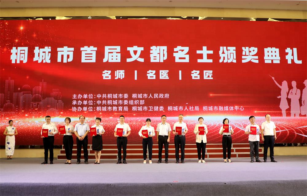为全面推进人才强市战略,充分调动和激发全市各类人才的创新创造活力,在全社会形成尊重人才、发现人才、用好人才的浓厚氛围,6月29日,桐城市举行首届文都名士颁奖典礼,为评选出的37名首批名师、名医(名护)、名匠颁奖。