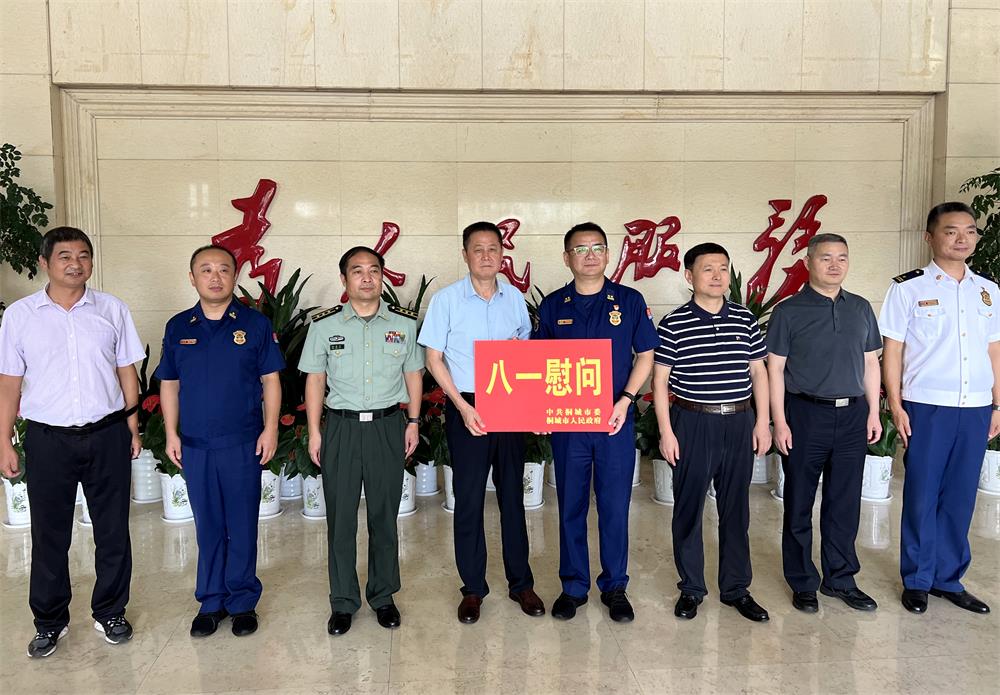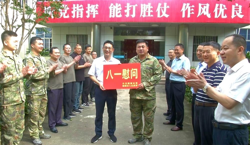7月31日上午,“八一”建军节来临之际,市领导刘存磊、江学潮、潘利民、洪长久、任关兴、王中龙、金天柱带着全市人民的深厚情谊和美好祝愿,分组慰问驻桐及驻宜部队官兵、荣休军人、消防救援指战员,向“最可爱的人”献上崇高的敬意。 市委副书记、市长刘存磊率队到市人武部、省荣康医院、市消防救援大队、武警桐城中队,送上慰问金,与驻桐部队官兵、荣休军人及医护人员、消防救援指战员一一握手,向他们致以节日的祝贺和亲切的慰问,感谢他们一直以来为桐城经济发展、社会稳定、人民安康所付出的辛勤努力和作出的贡献。