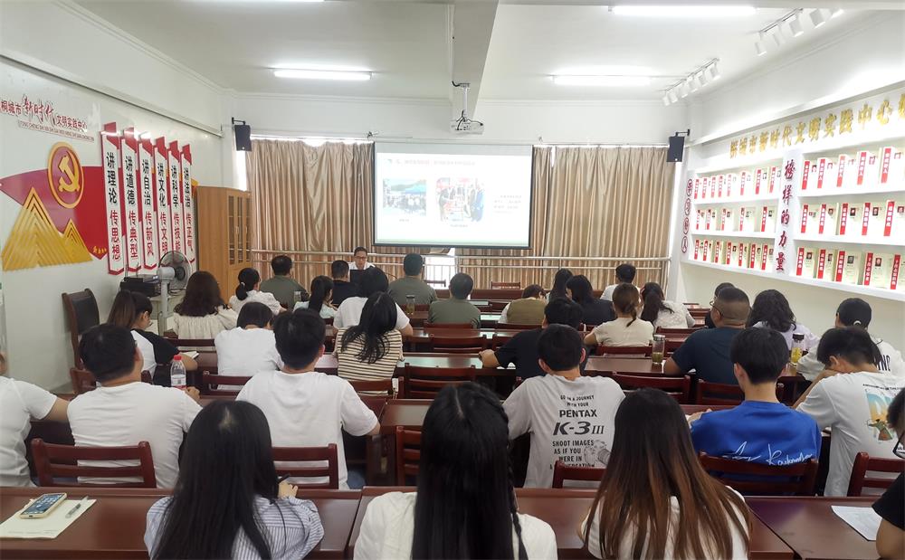 为充分发挥道德模范、身边好人等先进典型的示范引领作用,弘扬主旋律、传递正能量,8月17日,桐城市新时代文明实践中心开展“听‘好人’讲故事,学榜样精神”宣讲活动,邀请“安庆好人”陈波作主题宣讲报告。 陈波是桐城市委组织部驻唐湾镇蒋潭村乡村振兴工作队队员,驻村以来,他脚踏实地、苦干能干,争取各类资金480余万元,发表信息宣传稿件160余篇,用实际行动践行初心使命。日前,他被评为“敬业奉献类”安庆好人。在宣讲报告中,陈波分享了自己驻村工作的经历、助力乡村振兴的经验,勉励聆听报告的社区(村)两委干部爱国爱党、爱岗敬业,从身边小事做起,更好地服务社会和群众,为乡村振兴、人民幸福贡献青春力量。