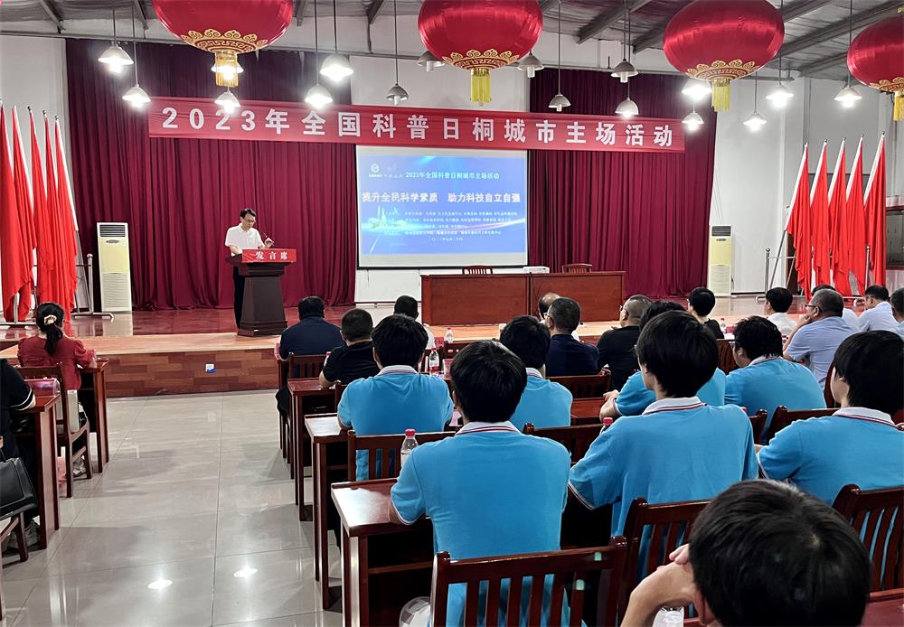 9月20日,2023年“全国科普日”桐城市主场活动在桐城海峡高级技工学校举办,今年的活动主题为“提升全民科学素质,助力科技自立自强”。安庆市科协党组书记胡忠新出席活动并讲话。我市领导洪长久、陈玉莲、卢俊义、刘决成出席活动。 胡忠新代表安庆市科协向本次活动的举办表示热烈祝贺,他指出,桐城市近年来坚持把开展科普工作与服务高质量发展相结合、与群众需求相融合,开展了一大批主题鲜明、形式多样、内容丰富的科普活动,在全社会营造了崇尚科学、鼓励创新的良好氛围。希望桐城市广大科技工作者继续提高政治站位,开创科普工作新局面;继续注重工作创新,举办更多品牌科普活动,促进科技创新,服务高质量发展。桐城市科协要全面落实“科创安徽”试点城市建设的目标任务,利用国家和省市级学会的智力资源,建设一批高水平的专家服务站,把学会的智力资源转化为企业的技术创新资源,为党委和政府科学决策服务、为经济社会高质量发展提供更强智力支持。