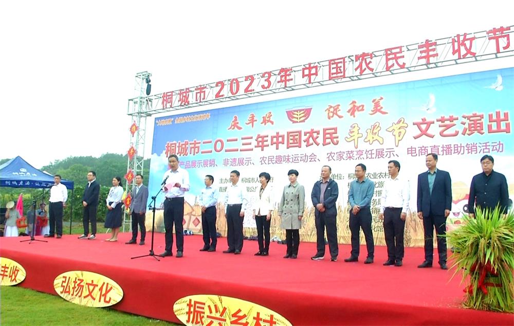 秋来稻菽千重浪,最喜人间丰收季。主题为“庆丰收 促和美”的桐城市2023年中国农民丰收节主场活动,9月23日在大关镇明月湾家庭农场举行。 市委副书记洪长久宣布活动开幕。市委常委、宣传部部长殷锐,市人大常委会副主任汪名东,副市长占娜,市政协副主席崔强出席活动。副市长汪杰贤在活动开幕式上致辞。