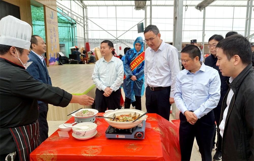 图为市领导洪长久一行在农家菜烹饪展台前了解美食制作技艺。 汪杰贤在致辞中向全市广大农民朋友和“三农”战线的工作者致以节日的问候。他指出,近年来,我市深入实施乡村振兴战略,坚决扛稳粮食安全政治责任,全力推动乡村产业蓬勃发展,扎实推进宜居宜业和美乡村建设,农村发展活力不断释放,农业“基本盘”持续夯实,“压舱石”作用更加稳固。下一步,全市上下要大力推进农业全产业链发展,推深做实“千村引领、万村升级”工程,努力在农业高质高效、农村宜居宜业、农民富裕富足上取得更大成效。
