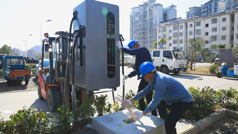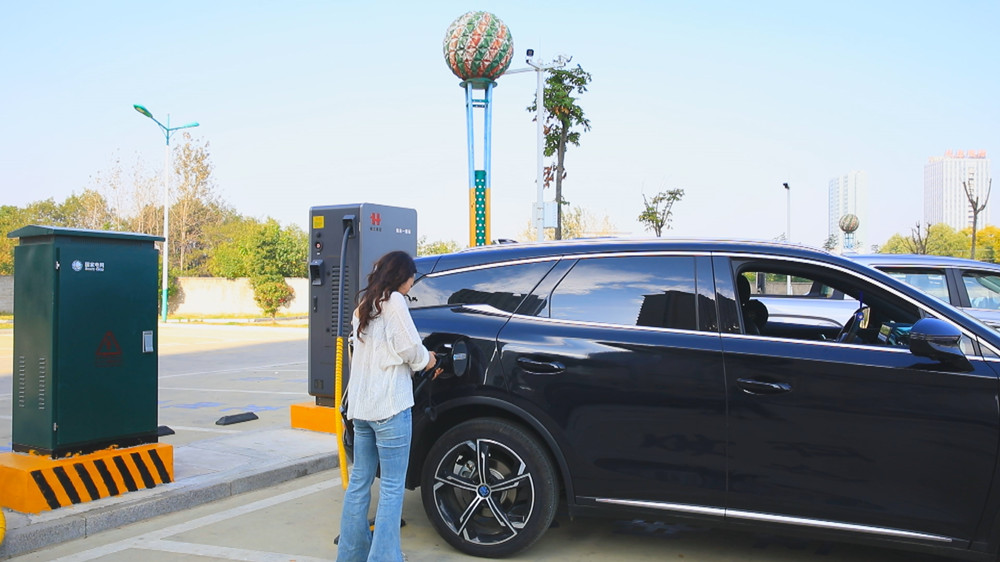 今年以来,桐城市大力推进新能源汽车充电基础设施建设,更好地满足群众日益增长的新能源汽车充电需求,助力绿色出行。 在桐城市文昌再就业园停车场,当地供电部门的工作人员正在安装新能源汽车充电桩。组装、接电、调试,大约一上午的时间,这里的4个充电桩便完成了安装调试。据现场施工负责人蔡晨庆介绍,施工人员于9月份进场,经过设备基础开挖、基础混凝土浇筑、铺设电缆、安装设备,现在已经完成通电、调试,可投入正常使用。1个充电桩可满足2辆车同时充电,一辆车充满电仅需40分钟。 眼下,桐城市已建成的新能源汽车充电桩全部入驻高德、百度等主流地图软件和当地供电部门开发的“横江充电”小程序,广大市民游客可以点开相应的导航图,就近选择充电桩和查看充电状态。