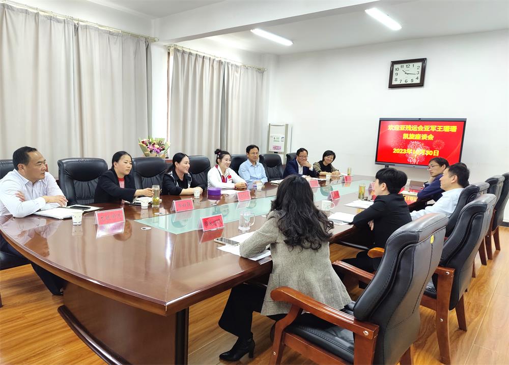 图为欢迎仪式现场。 在交流发言中,王珊珊畅谈了参加此次杭州亚残运会的心路历程。她表示,此次获奖离不开家乡人民的支持,离不开市委市政府的关心和鼓励。接下来,她将坚持刻苦训练,希望在世界级的赛场上为国争光、为家乡添彩。 市委办、市政府办、市委宣传部、市妇联、市残联、市文旅体局以及龙眠街道相关负责同志参加上述活动。(程邦民) |