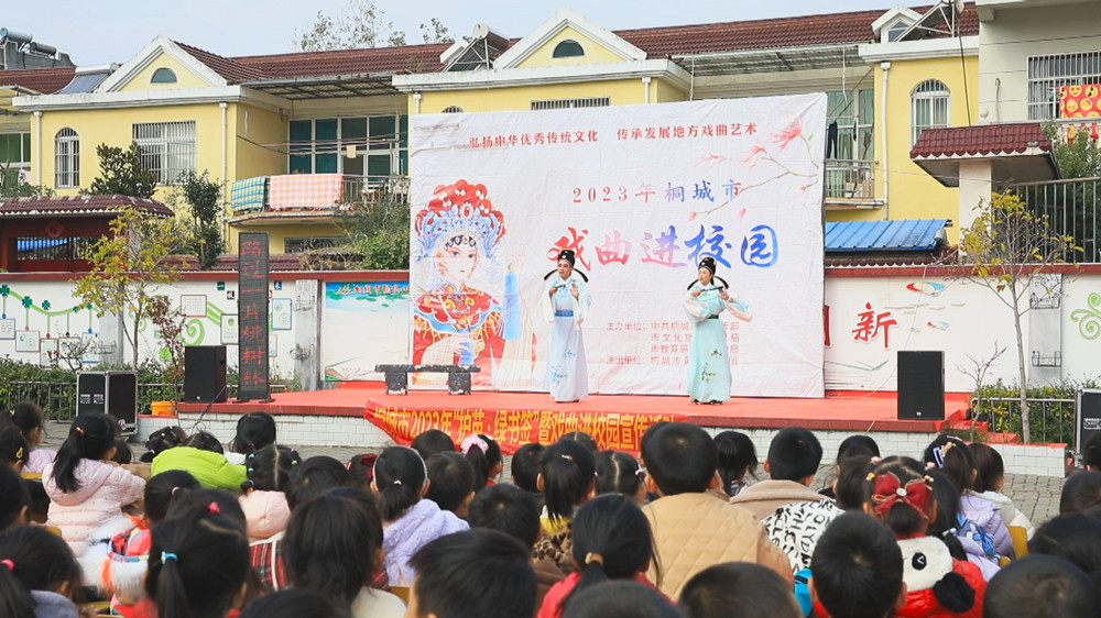 “今天晚上送戏下乡的节目特别精彩,希望你们今后能多多送戏下乡,我们农村老年人都特别喜欢看黄梅戏……”演出结束后,村民徐礼刚意犹未尽地说道。文化惠民工程“送戏进万村”活动的开展,不仅把欢乐带到了基层,更是把中华优秀传统文化、时代文明新风尚带到了群众身边。与此同时,桐城市还同步开展“戏曲进校园”活动,做好优秀传统文化的传承工作。 据了解,2023年,桐城市黄梅戏剧团累计开展208场“两送”文化惠民演出,其中,送戏进万村139场,戏曲进校园59场,让文化惠民工程真正成为群众满意的暖民心工程,让老百姓在家门口尽享地地道道的文化大餐,用文化助力乡村振兴。