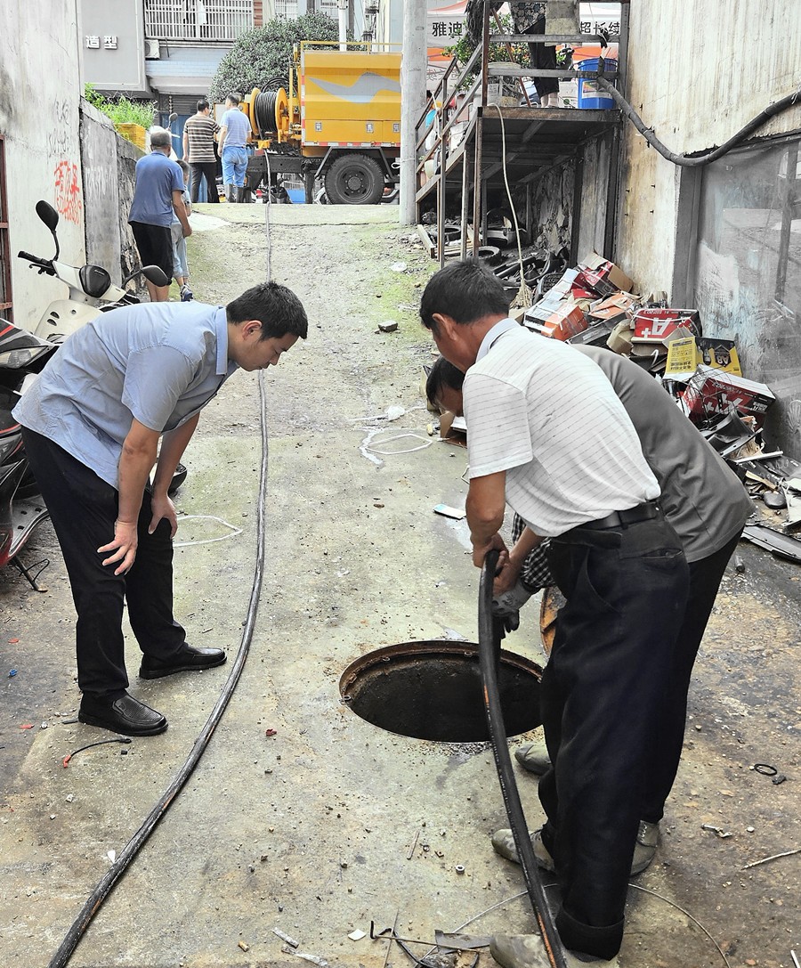 6月30日下午,经过4个多小时的努力,市市政公司抢修人员疏通了新渡镇一居民小区的下水道,下水不通、异味扰民的群众忧心事迎刃而解。 近日持续强降雨,导致该居民小区的下水道堵塞,积水难消、异味四溢,影响小区居民的正常生活。接到群众反映的情况后,该镇防汛巡查人员第一时间联系桐城市市政公司,寻求“支援”,终于将此处下水道彻底疏通,及时消除积水和异味,受到小区居民点赞。 洪国志 孙传银 摄 |