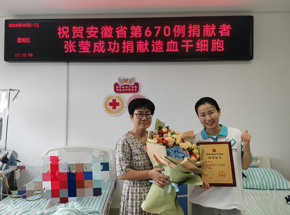 捐献大爱,守望生命。9月27日,桐城志愿者张莹成功捐献造血干细胞,生命的种子将挽救一位陌生的重症血液病患者,成为桐城市首例、安庆市第38例、安徽省第670例造血干细胞捐献者。 张莹是安庆鑫盛物业管理公司桐城项目部的一名员工,身材娇小的她朴实能干,深受同事们的赞许。2023年4月的一天,张莹加入中华骨髓库,想成为那个几百万分之一的“幸运儿”。没想到,这个愿望在今年6月份有了“回音”,安徽省红十字会通知她参加高分体检、复检。两轮体检,张莹都顺利通过,并将捐献造血干细胞的日期定在9月22日至27日。 9月22日上午,桐城市红十字会为张莹举行欢送会,桐城市委政法委、市文化发展中心、卫健委、总工会、团市委、市妇联、安庆市无偿献血者协会和安庆鑫盛物业管理公司负责同志为张莹送行。在欢送会上,谈及捐献造血干细胞的初衷时,身佩“造血干细胞志愿者”绶带的张莹平和地说:“我的想法很简单,只想着去一趟医院,救一个人的命,然后就回来。”欢送会结束后,桐城市红十字会志愿者一行护送张莹前往合肥入住中科大第一附属医院,进行采集前的准备。 善解人意的张莹总是不想给别人添麻烦,不想让别人知道她在做好事。前两轮体检,她都是利用休息时间自行前往、配合检查。因为此次捐献需要住院一周,必须要向单位请假,同事们才知道张莹捐献造血干细胞的事。在中科大第一附属医院住院期间,张莹一直报平安,说一切都好。其实,张莹心里牵挂着家人,在医院睡不好觉,一直头痛。 9月27日早上6时,张莹就开始打点滴,做采集前的准备。8时许,张莹进入采集室,一直到下午1时,造血干细胞采集才结束。这5个小时,张莹躺在床上,两个胳膊因插着针管不能动弹,又酸又麻。但勇敢的张莹坚持到了最后,245毫升的混悬液成功采集。 张莹成功捐献造血干细胞,为“大爱桐城”增添了生命的颜色。张莹的救人善举,必将带动更多的桐城人加入捐献造血干细胞的行列。感谢拯救生命的路上一直有您,造血干细胞捐献者! (胡亚林) |