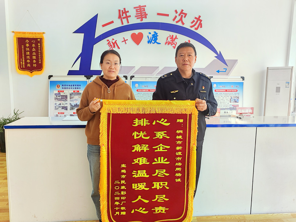11月12日,桐城市市场监督管理局办公室收到了一个特别的邮包,包裹里装着一面绣着“心系企业尽职尽责,排忧解难温暖人心”的锦旗,指名敬赠新渡市场监管所所长杨诚。 原来,陕西省宝鸡市民政彩印厂是一家主要从事包装印刷行业的残疾人福利企业。今年9月13日,因生产需要,该企业法人梁中英通过微信从新渡镇某企业订购了价值4万元的塑料袋,并支付了4000元定金,但未签订正式合同。然而,梁中英要货时,对方电话不接、微信不回。在无法联系对方后,10月23日,梁中英投诉到新渡市场监管所请求帮助。该所所长杨诚接到求助后,迅速带人找到这家供货企业,经询问企业负责人汪某得知:近期因企业扩大生产、更换经营地址,暂停了所有业务。 了解事情原委后,杨诚运用“六尺巷调解工作法”,从关爱残疾人士、诚信为本、消费者权益保护法讲起,动之以情、晓之以理、明之以法,让汪某认识到自身的错误。汪某立即采取补救措施,主动联系梁中英说明情况,在复产后的10月27日按质按量发货,双方达成和解。 梁中英收到货物后,特意从千里之外的陕西寄来锦旗,向杨诚表达谢意,于是出现本文开头的一幕。 据悉,新渡市场监管所始终践行“市场监管为人民”的服务宗旨,高效为民解难,全力维护市场公平。今年以来,该所共受理、办理各类消费投诉举报817件,所有投诉举报都做到了按时受理、按时核查、按时办结,办结率和群众满意度均为100%。 (储蕾 孙传银) |