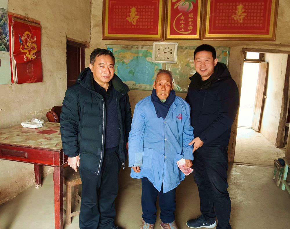 12月30日上午,新渡镇镇村工作人员上门看望罗潭村百岁老人程士中(中),送上1000元慰问金,祝福老人健康长寿、晚年生活幸福,告诉老人以后每月可享受300元高龄补贴。 山中难找千年树,世上难寻百岁人。为弘扬尊老敬老传统美德、践行爱老助老社会风尚,镇村工作人员还详细了解老人的饮食起居等情况,叮嘱老人的子女照顾好老人,让老人晚年生活安心、舒心、暖心。 程院生 孙传银 摄 |