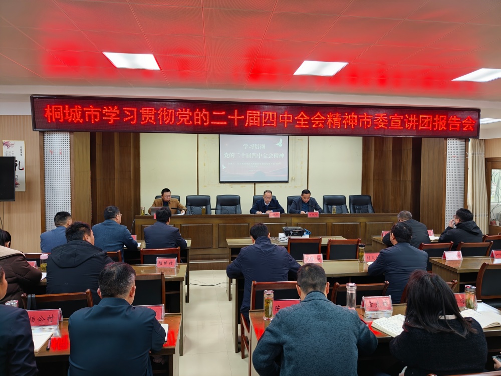 12月10日,桐城市学习贯彻党的二十届四中全会精神市委宣讲团报告会走进金神镇。市委宣讲团成员以《深入学习贯彻党的二十届四中全会精神》为题,为该镇党员干部作专题宣讲报告。 此次宣讲报告会强调,学习宣传贯彻党的二十届四中全会精神是当前和今后一个时期的首要政治任务。全镇党员干部要以此次宣讲为契机,进一步掀起学习热潮,坚持把贯彻落实党的二十届四中全会精神与学习贯彻习近平新时代中国特色社会主义思想紧密结合,通过原原本本学、联系实际学、带着难题学,推动理论学习入脑入心、见行见效。 宣讲报告会结束后,市委宣讲团成员与该镇企业代表面对面交流,倾听并协助企业解决发展难题,进一步凝聚起全镇上下贯彻落实四中全会精神、奋力开启经济社会发展新局面的强大合力。 金神镇党政领导班子全体成员、全体机关干部、镇直各单位负责同志及各村党组织书记聆听了宣讲报告。 (孙炳龙) |