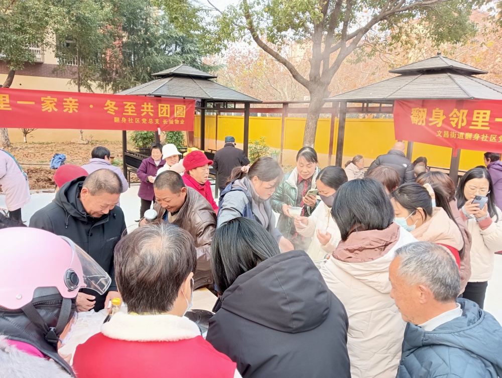 12月17日,文昌街道翻身社区幸福春天小区老年活动中心庭院里,欢声笑语、热气腾腾。青和物业公司党支部携手翻身社区党总支、幸福春天物业服务中心,联合举办“翻身邻里一家亲,热饺暖汤庆团圆”包饺子活动,以传统美食为纽带,凝聚社区温情,传递党组织的关怀。 冬至日将至,新投入使用的幸福春天小区老年活动中心庭院首次迎来大型集体活动,吸引了众多党员、业主和长者参与。活动现场,党员志愿者与小区业主齐聚一堂,包饺子、煮饺子。许多老人一边包饺子一边聊家常,新庭院里充满了“家”的温暖与活力。 随着饺子端上桌,大家围坐一起,共同品尝亲手制作的美食。简单的饺子宴,吃出了浓浓的邻里情,更凝聚了基层党组织与群众之间的深厚情感。“这饺子馅真香!”“咱们这新庭院投入不久就这么热闹,真好!”业主们纷纷称赞。