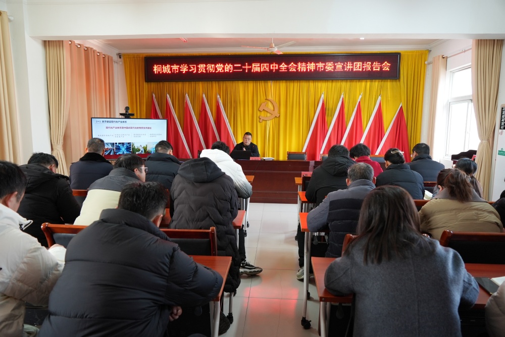 12月25日,桐城市学习贯彻党的二十届四中全会精神市委宣讲团报告会走进鲟鱼镇。市委宣讲团成员为该镇党员干部作专题宣讲报告。 宣讲报告会上,市委宣讲团成员通过鲜活的案例和通俗的语言,将党的二十届四中全会精神的核心要义转化为基层干群听得懂、能领会、可落实的“家常话”,并结合桐城“进十强、冲千亿”发展目标与鲟鱼镇的产业特色和发展实际,引导该镇上下要以党建引领基层治理创新,扎实解决群众的急难愁盼,切实把四中全会的战略部署转化为推动鲟鱼高质量发展的具体行动和实际成效。整场宣讲既有理论高度,又有实践深度,让现场听众深受启发、倍感振奋。 宣讲报告会结束后,市委宣讲团成员还向社区两委干部宣讲党的二十届四中全会精神。 鲟鱼镇党政领导班子成员,社区两委干部,镇直机关负责同志,“两企三新”组织的党组织书记、党务工作者聆听宣讲报告。(吴琦 徐呈可) |